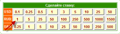 4. Маленькие ставки (1 рубль) делаем в каком угодно порядке, но только не на крайнюю левую ячейку!